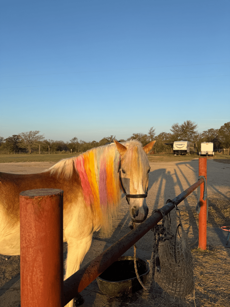 I immediately stopped giving treats. It’s harder than it should be, for me. I almost feel like I’m not enough, if they aren’t getting cookies they won’t want to do things with me. There’s clearly some deep-seated issues there from being fed as a child. But much to my surprise, the horses didn’t really seem to care. Even Griffy, who we call the Cookie Monster – he was just….fine. He still occasionally nudges my pockets just to check, but overall, he doesn’t really seem to miss the treats. And the best part is I really think it’s helped his anxiety come down! When I see him ramping up I let him graze for a few minutes. When he’s calmed down enough, we go back to doing the thing. We’re still working on a balance between grazing and working, but I’d say it’s going really well.