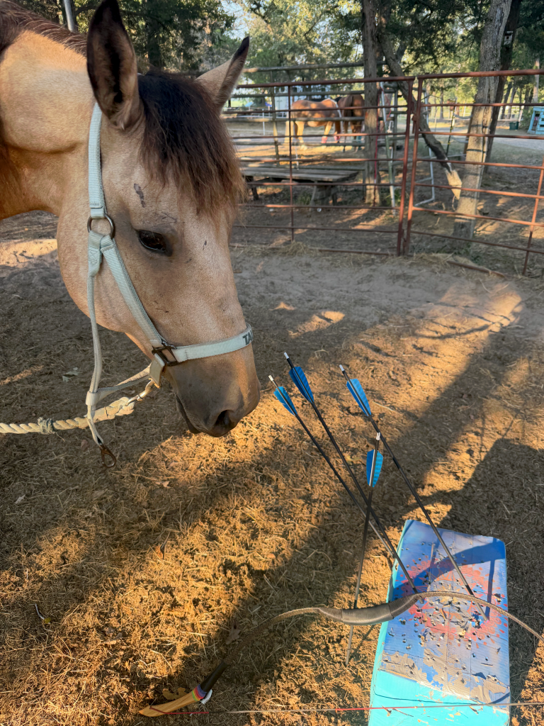 He didn’t really care about the arrows, he was definitely just scared being in a new area. The first pass down the lane, he was trying to rush to get to the other horses and I was having a hard time holding him back. My right shoulder is gonna be sore tomorrow!