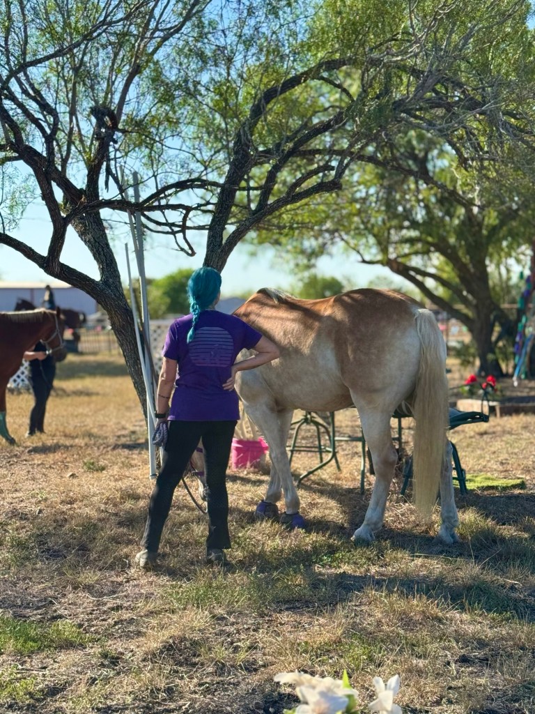 After schooling it was back to the trailer for grooming & a little pizzazz;