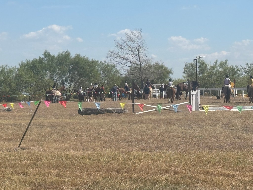 Anyway, we got on the course & everything was ok until about halfway through. I don’t know why, or what they were doing, but a group of 4 of those riders began cantering in circles behind the course.