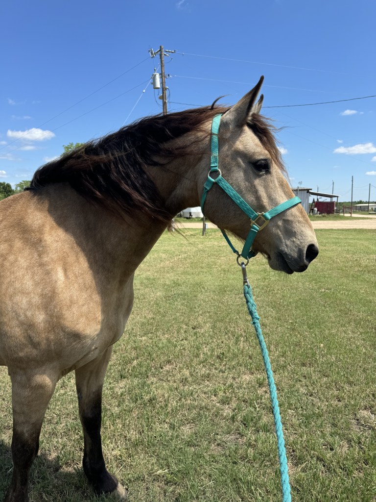 Talos is a 10-year-old Friesian/Paint cross gelding. When I met him, I called him “Chris Hemshorse” because if Chris Hemsworth were a horse, he’d look like this. He was purchased by a boarder at the barn I was taking lessons at to be his all-around horse, but after 6 months he determined they weren’t a match. He paid an astronomical amount of money for him, and I always joked if he wanted to sell him half off I’d buy. Imagine my shock when in April of 2024 the barn owner messaged me and said “So….he wants to sell.” As of June 6th, he is officially mine!